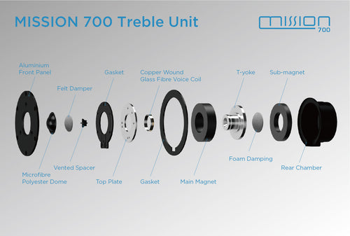 Som med flagskibet 770 har Mission udviklet en ny bas/mellemtone-driver i polypropylen og et modelspecifikt motorsystem. Denne transducer opgraderer ikke kun højttalerens integrerede design for at tage højde for moderne effekthåndtering og dynamiske krav, men den opretholder også den udvidede respons og lave farvning af den oprindelige model med alle kendetegnene og distinktionen ved en klasseledende højttaler. Fra det stive, støbte chassis til surround med lav densitet er alle aspekter blevet revideret for at tilbyde en driver med forbedret stivhed og præcisionsstyret konus-terminering til dynamiske præstationer og tilbyde stram, hurtig, energisk output.
